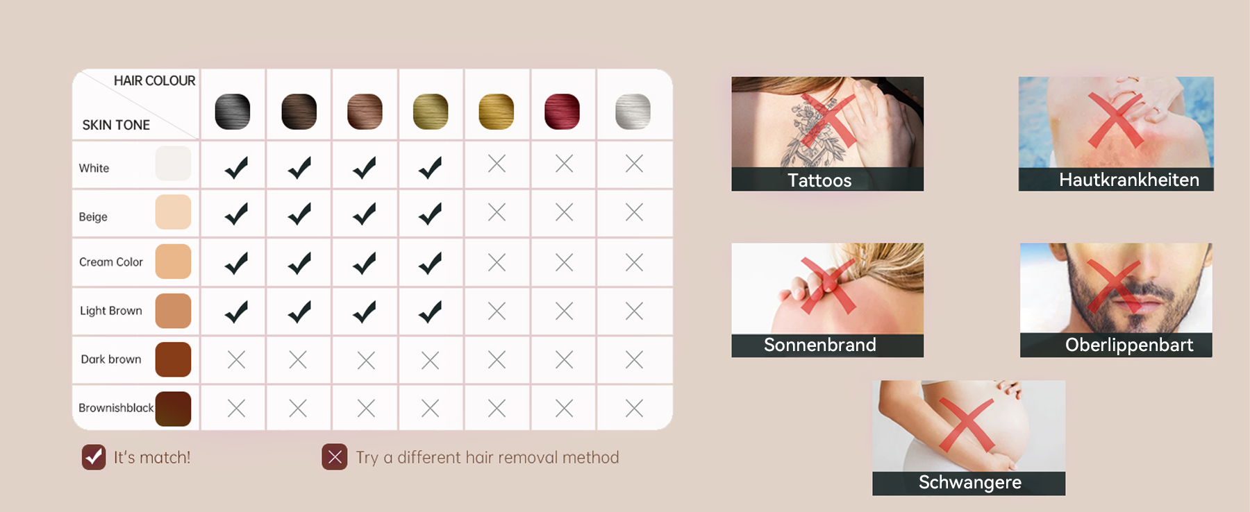 Passen Sie die Intensität an Hauttyp und Haarstärke an, um beste Ergebnisse zu erzielen.
